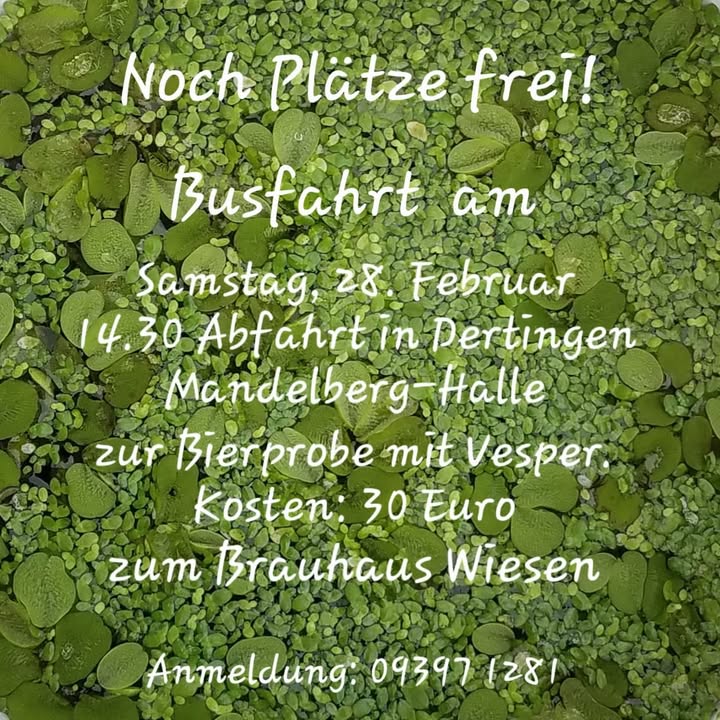 Die Musikkapelle Dertingen macht einen Vereinsausflug in die Brauerei nach Wiesen. Im Bus sind noch Plätze frei und interessierte können sich bei Joachim Hettinger anmelden