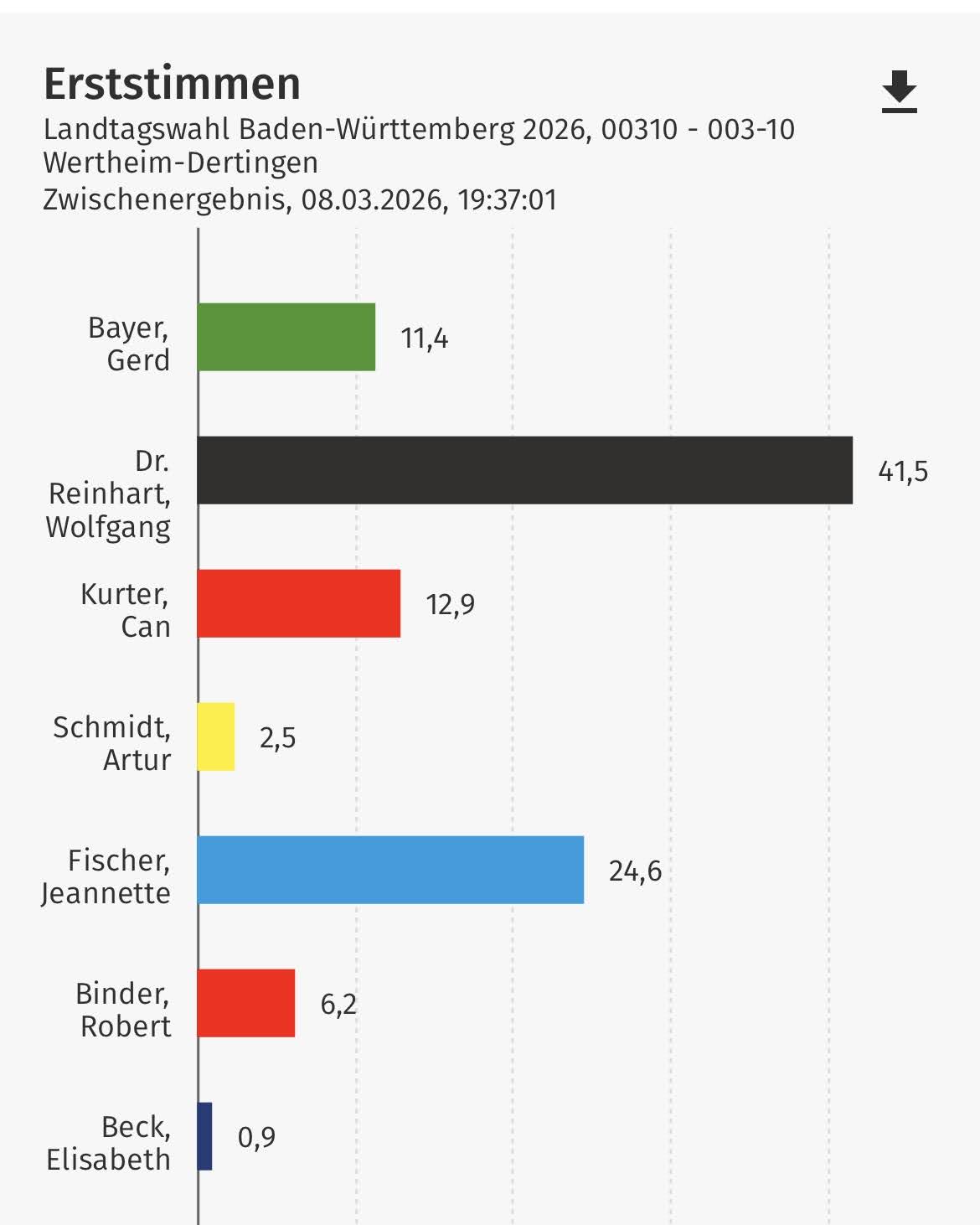 Screenshot Veröffentlicht 09.03.2026 am 1170 × 1462 in Wahlergebnis der Landtagswahl in Dertingen Wahlergebnisse Dertingen – Landtagswahl 2026
