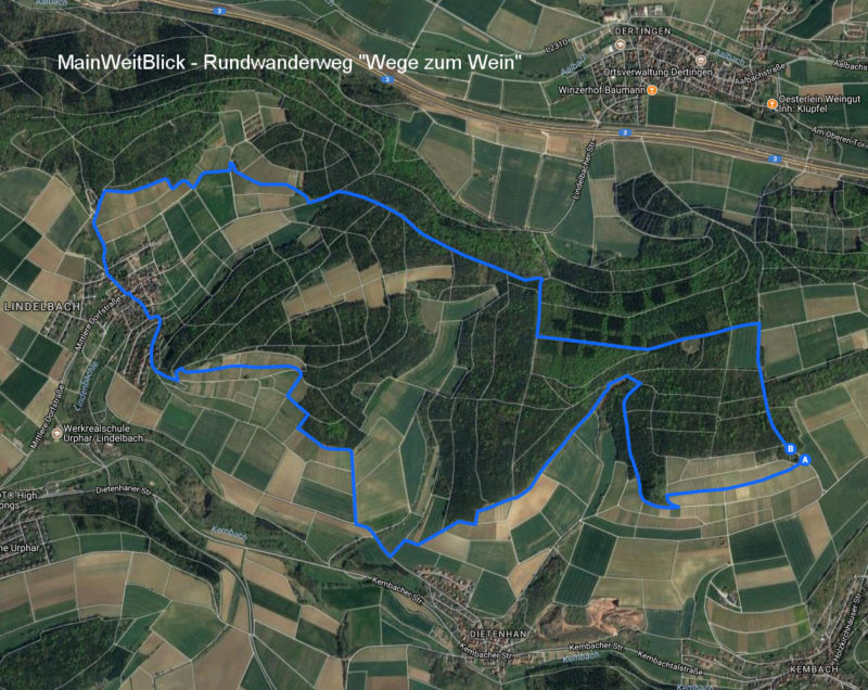 Der Weg beginnt in Wertheim-Kembach an der Sonnenberghütte. Dort ist eine große Hinweistafel aufgestellt. Der Rundweg verläuft dann über Dertinger und Lindelbacher Gemarkung zur Aussichtsplattform, die dem Weg den Namen gibt. Den Wanderer erwartet ein herrlicher Ausblick auf die Mainschleife und die ersten Ausläufer des Spessarts. Von dort geht es dann wieder zurück zum Ausgangspunkt.